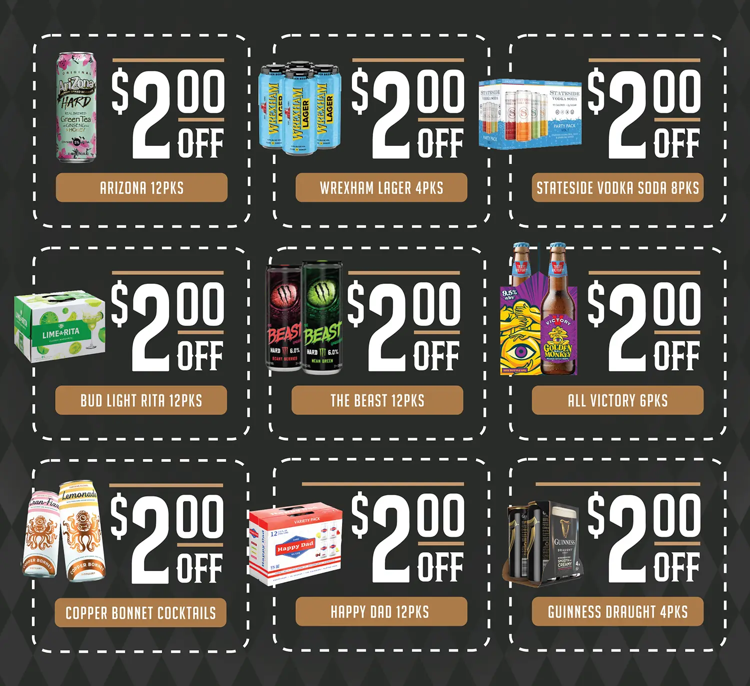 Our shelves are overflowing with incredible discounts that will keep your coolers full and your wallets happy. Throughout October, you’ll find $2 OFF on some of the best beers and ready-to-drink cocktails, including: